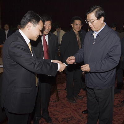 2008年11月1日下午,中共中央政治局委員、國務院副總理張德江在工業(yè)和信息化部部長李毅中、江蘇省委書記梁保華、省長羅志軍等陪同下,在南京東郊國賓館召開了中小企業(yè)座談會。