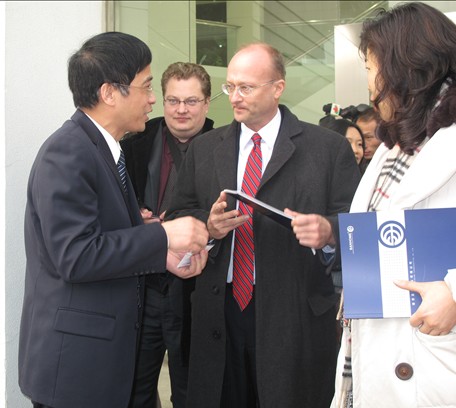 2009年12月1日下午,參加第五屆中歐工商峰會(huì)的部分代表一行十余人來我公司新港基地參觀考察,副總經(jīng)理戚良猛、張倉(cāng)接待了來自中歐工商界的客人。