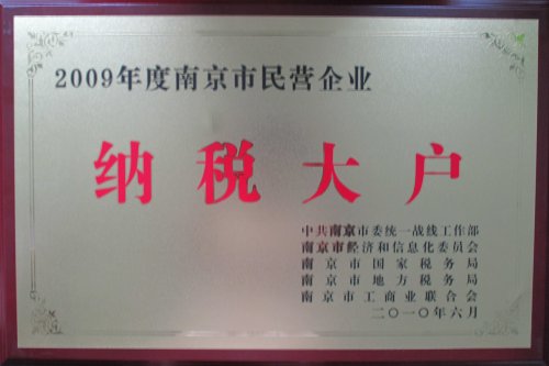 日前,由中共南京市委統(tǒng)戰(zhàn)部、南京市經(jīng)濟(jì)和信息化委員會(huì)、南京市人力資源和社會(huì)保障局、南京市國家稅務(wù)局、南京市地方稅務(wù)局、南京市工商業(yè)聯(lián)合會(huì)聯(lián)合評(píng)出了“2009年度南京市民營企業(yè)納稅大戶”,我公司在此次評(píng)比中光榮上榜。
