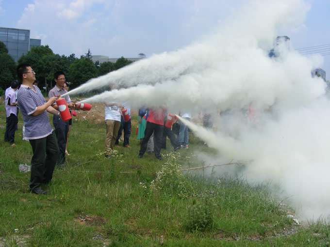 為了達(dá)到本次培訓(xùn)的效果,行政部專門邀請(qǐng)了南京安居防火教育培訓(xùn)中心時(shí)真銀教官來為大家授課。時(shí)教官生動(dòng)形象講述了火災(zāi)發(fā)生時(shí)所要掌握的一些常識(shí)和各種逃生技巧,并向大家詳細(xì)介紹了各種防火器材的準(zhǔn)備及使用。隨后,在廠區(qū)的一塊空曠的草地上,采用火盆實(shí)地演習(xí)滅火器的使用方法,演練者熱情高漲,積極參與了演練的全過程。